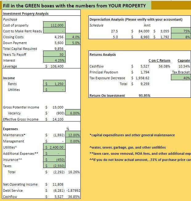 This Spreadsheet can be used to Analyze Investment Properties that you may be interested in buying.